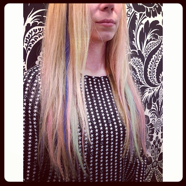 Dana used Bumble & bumble’s spray chalk to create a colorful yet temporary look on Amanda. #bumbleandbumble #spraychalk #fawnandfoxsalon