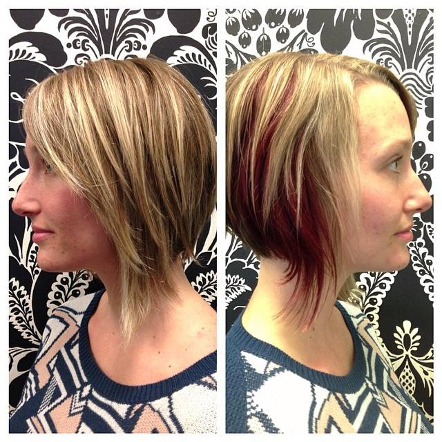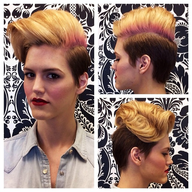 Bumble & bumble spray chalk was used to create soft pink roots on this voluminous coif. Hair by Kristin. Make-up by Shianne.
